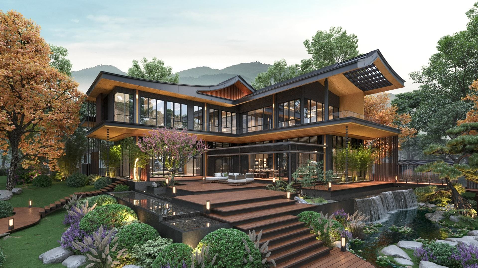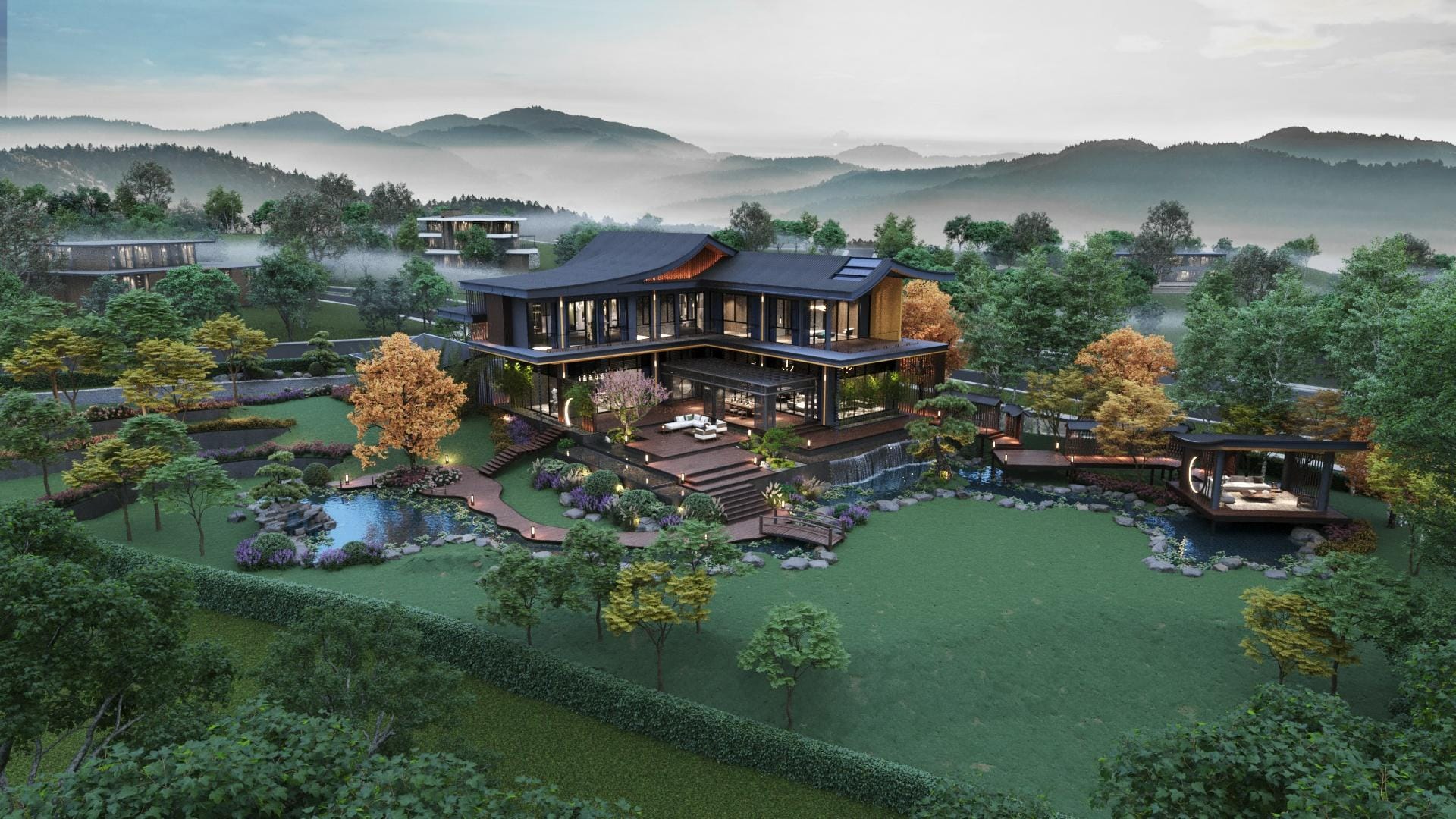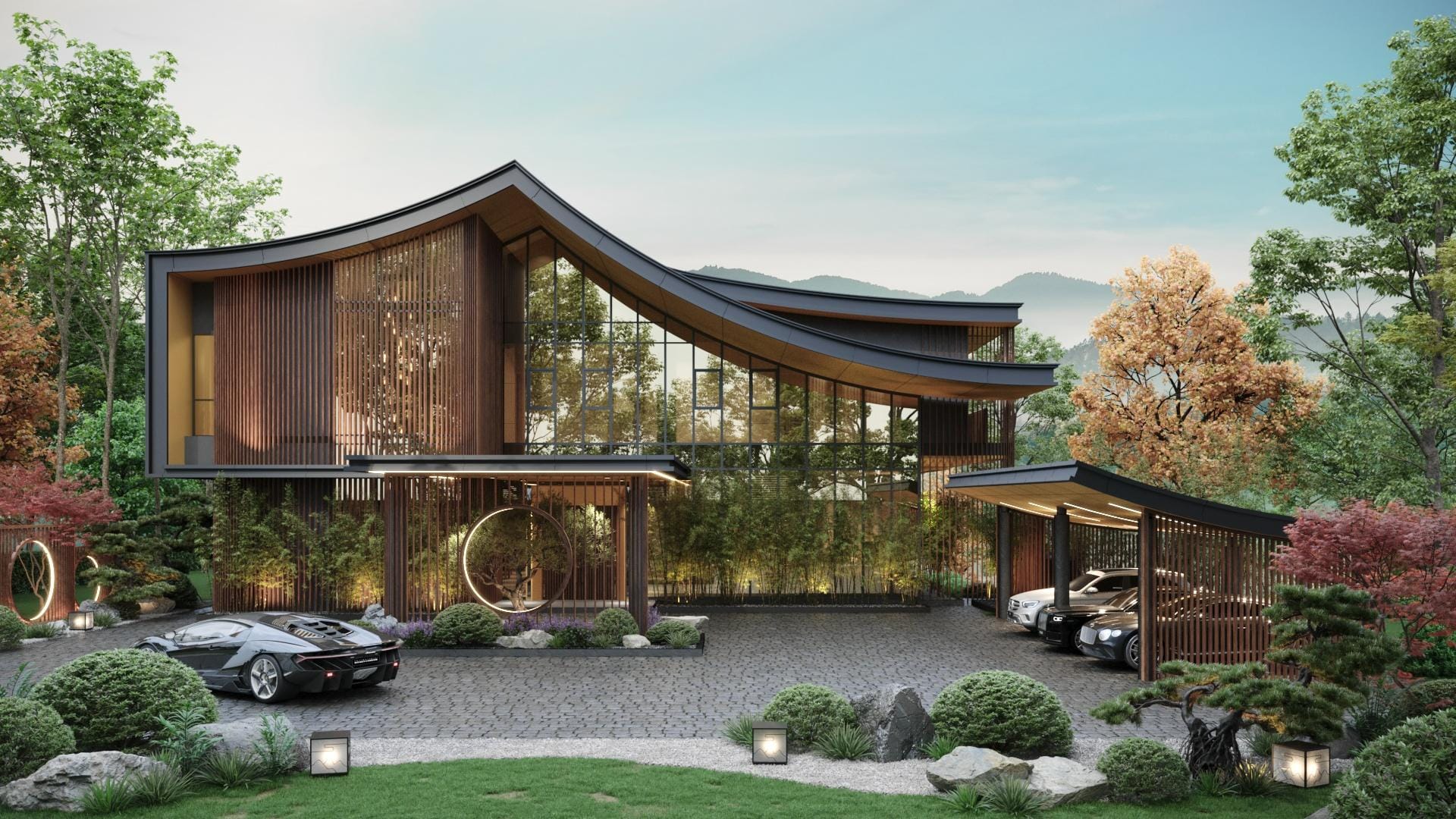 The design concept of this villa is inspired by the New Oriental style, aiming to blend modern comfort with the elegance of traditional culture. The overall architectural layout is carefully integrated into the local hilly landscape, built along the slopes with layers of mountains in the background. The natural scenery not only provides a magnificent view but also serves as an inspiration for the design. By incorporating the “Culture + Nature” (Cul-nature) duality of thought, the building becomes a unique presence that harmonizes with its surrounding natural environment.