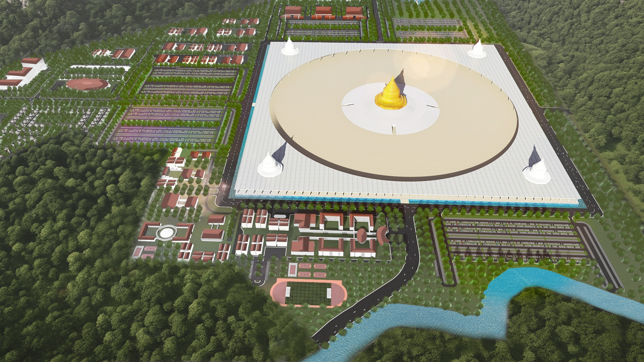The site is located Dhamazala Buddhism Park, Mandalay. There are including Pagoda, Outdoor Meditation, Dining, 3 Storeyed, Staff Dormitory, Carparking, Villas, Monastic, Pariyatti Education, Modern Buddhist University, Research Centre, Vocational School and Basic Dhamma Education Centre. The site located far from downtown in Mandalay and far from Mandalay International Airport.
