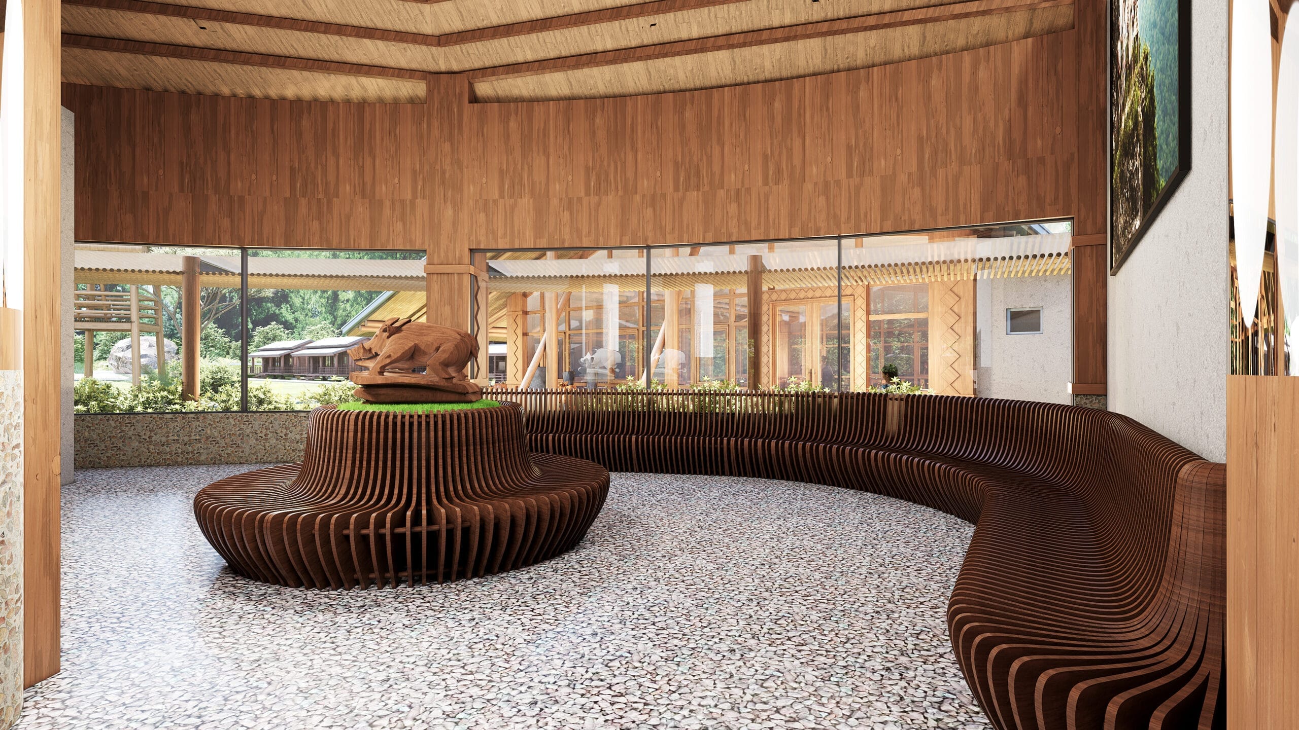Expand the lobby kitchen and dining areas, and add storage facilities, covered walkways, and multipurpose spaces. The parking lot will also be expanded to enhance food and beverage services, improve operations and educational experiences, and strengthen transportation and reception capacity.